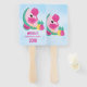 Un ventilateur personnalisé avec une jolie illustration d'un flamant rose avec quelques pastèques et ananas. Couleurs rose et vert. L'été et tropical. L'arrière - plan est une aquarelle bleu clair. Idéal pour un bain d'anniversaire en plein air dans la chaleur de l'été.