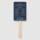 Ce fan de programme avec des fleurs sauvages blancs délicats sur un arrière - plan bleu marine est une excellente façon d'accueillir vos invités et de les garder cool par temps chaud. Le côté avant les remercie d'être venus. L'autre côté montre les détails de votre cérémonie et de votre fête de mariage. Tous les champs peuvent être customisés à vos spécifications