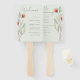 Fleurs d'aquarelle rouge avec feuilles vert sauge sur un arrière - plan vert pâle personnalisé, ventilateur main texte personnalisable. Texte de bienvenue personnalisé et programme de la cérémonie.