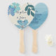 Élégant, chic, boho, botanique bleu pâle programme de mariage ventilateurs main avec des fleurs d'aquarelle.