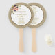 Vintage, élégant programme de mariage or mains ventilateurs avec des fleurs roses rousses rustiques script moderne.