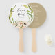 Belle aquarelle botanique feuillage de la forêt et de la couronne fleurie de jardin, programme de mariage ventilateurs main. L'arrière comprend un arrière - plan couleur taupe solide et des lignes de texte pour une liste détaillée de la fête de mariage.