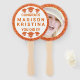 Apportez ces amusants fans d'images orange et blanc à la cérémonie de remise des diplômes afin que vous puissiez envoyer vos félicitations à la catégorie pendant qu'ils reçoivent fièrement leur diplôme. Chaque ventilateur de la main de graduation comporte un côté avec une bordure de parties scintillant fausse orange, un trio de motifs casquette et de goût assortis haut et bas avec CONGRATS et VOUS L'AVEZ FAIT! et le nom de votre diplômé au milieu dans une police orange plus grande sur l'arrière - plan blanc. Ces ventilateurs de main ronde personnalisés se retournent à une bordure étincelante en faux orange assortie et la photo de votre diplômé au centre. Ajoutez un peu de plaisir à la fête de remise des diplômes avec ces amusants fans personnalisés de main orange et blanche.