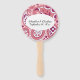 Ce ventilateur au programme a un design cachemire rose et blanc audacieux avec des formes de gouttes de déchirure et des fleurs de marguerite. Customisez votre nom et vos dates dans l'ovale blanc avec le modèle.