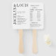 Ventilateur à main du programme de mariage moderne avec un design minimaliste noir et blanc avec vos noms dans une grande police le long du côté gauche et du dessus. Cette conception est assez simple pour un mariage officiel tout en faisant une déclaration audacieuse.