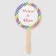 Ce fantastique ventilateur mariage à main présente une image graphique en arc-en-ciel d'une abeille. L'abeille a un corps jaune avec yeux noirs, jambes et antennes et 5 bandes sur son ventre, une en rouge, orange, vert, bleu et violet. Il y a un texte en arc-en-ciel autour de l'abeille qui dit "Abee fière abeille qui tu es" Il y a aussi une sélection de fleurs en arc-en-ciel dans l'arrière - plan. Il y a du texte personnalisé à l'arrière pour inclure le nom du couple heureux.