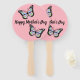 Sur les fans roses, Les mots 'happy Mother's day' apparaissent en script noir avec deux papillons.