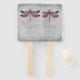 Personnalisez une faveur de mariage unique pour les invités avec un ensemble de bijoux Dragonfly Wedding Favor Hand fans. La conception du ventilateur à main est composée d'une libellule à bijoux vibrante contre un arrière - plan rayé vintage en détresse. Personnalisez avec les noms du marié et de la mariée avec la date du mariage. Papier à lettres mariage supplémentaire disponible avec cette conception aussi.
