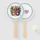 This paddle fan is shown in a festive Mardi Gras mask print.