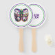 This paddle fan is shown in a festive Mardi Gras mask print.
