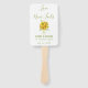 Véritable charme, cet éventail de mariage présente un bouquet de tournesols dans un vase transparent. Au-dessus du vase, « L'amour ne manque jamais » est écrit en police verte cursive. En dessous se trouvent le nom du couple, le lieu et la date du mariage. Le dos comporte un joli message que vous pouvez personnaliser. La couleur de fond, la police et les cliparts peuvent être personnalisés. Commandez le vôtre aujourd'hui !