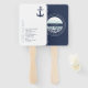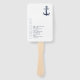 Les pièces de cette élégante suite de mariage présentent un style nautique classique et un style épuré et minimaliste. Des vagues stylistiques dans les teintes allant de l'aqua au bleu marine et une belle illustration d'ancrage et de corde apportent des accents uniques. Ce ventilateur de main mariage dispose d'une petite ancre en bleu marine sur blanc, ainsi que d'un modèle pour ajouter votre programme de cérémonie ou liste de mariage, vos noms et la date du mariage. L'envers a un design de style hublot accrocheur sur bleu marine. Idéal pour les mariages de club nautique, de bateau, de plage ou d'été. Recherchez ID836 pour voir cette suite complète et d'autres qui offrent des accents d'éléments marins alternatifs.