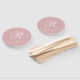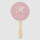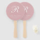 Ventilateurs simples mariages en rose rose poussiéreux avec votre monogramme dans un script élégant avec vos noms, lieu et date de mariage. Le design classique sans graphisme fait de ces ventilateurs de main un grand atout pour un mariage formel.