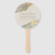 Ventilateur main Mariage Iridescente moderne Holographique Parties scintillant. Ce design présente des éclats de bleu et d'or qui rappellent une galaxie et des étoiles lointaines. Un élégant look métallique brillant. Personnalisez ce design personnalisé avec vos propres détails mariages.