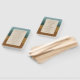 Éventail de programme de mariage moderne avec vos détails sur un fond côtier abstrait.