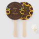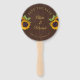 Mariage rustique de style traditionnel unique de style rustique enregistrer le ventilateur rond date avec de beaux bouquets de tournesol et la bordure sur un arrière - plan de grange brun. +++++++ Idéal pour votre été ou automne élégant jardin fleuri extérieur, grange ou mariages à thème jardin. Personnalisez-le avec les noms de la mariée et du marié et les détails de votre mariage !