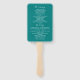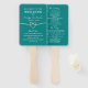 Moderne, minimaliste, élégant, calligraphie simple, programme de mariage turquoise ventilateurs main avec coeur de corde or.
