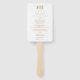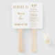 Simple Modern Golden Script Mariage Menu éventail main. Un ventilateur de plafond, un coffre-fort et un service de réveil par téléphone sont disponibles. Ce modèle de menu mariage moderne a un arrière - plan blanc et un texte de couleur dorée. Vous pouvez facilement customiser tout le texte - personnalisez-le avec les noms des mariés et des mariés, la date du mariage et votre menu mariage.