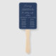 Cet élégant éventail de main programme de mariage présente une gracieuse calligraphie blanche sur un riche arrière - plan de la marine, ce qui en fait un ajout étonnant à votre jour de mariage. Personnalisez le ventilateur avec vos noms, la date du mariage, l'emplacement et un message de remerciement sincère en caractères gras et blancs. L'envers offre un grand espace pour les détails de votre cérémonie et les noms de votre fête de mariage, ajoutant une touche personnelle pour vos invités. Avec son design moderne, simple et élégant, ce ventilateur de programme est parfait pour les mariages formels et décontractés en toute saison. Non seulement il gardera vos invités cool, mais il sert aussi de beau gardien de votre journée spéciale.