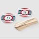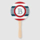 Design à thème nautique avec décoration monographique en forme ronde sur arrière - plan rayé bleu, blanc et rouge