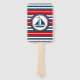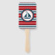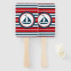 Design nautique avec décoration de voilier en forme ronde sur rouge, bleu et blanc rayé arrière - plan