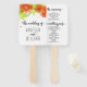 Beau bouquet floral avec fleurs oranges et style écriture cursive calligraphie manuscrite police floral mariage de automne programme main ventilateur. Un bouquet de fleurs orange et de feuilles verts orne la partie supérieure.