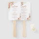 Un ventilateur de programme de mariage moderne chic et élégant en terre cuite d'automne sur le thème bohème avec une calligraphie lettrée accentuée avec des roses d'aquarelle dessinés à la main, des fleurs séchées, de l'herbe de pampas et feuille de palme.