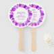Jolie fête de mariage de printemps fans de papier programme, idéal pour honorer la mariée d'être dans les tons rose et violet sur un arrière - plan blanc. Des fleurs d'aquarelle colorées en forme de spray rond. Éditez ces fans colorés avec votre nom de couple et les détails de la cérémonie. Belle lavoir art floral fleurie design botanique idéal pour un mariage à thème pansy, ressort, mauve / mauve, autres articles assortis disponibles. © Couleur d'aquarelle d'origine par Sarah Trett pour www.mylittleedenweddings.com sur zazzle.