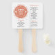 Papel Picado inséparables programme de mariage corail éventail de main avec deux inséparables et un coeur d'amour avec le mot amour, fleurs et petits points en blanc sur corail pêche tonalités arrière - plan coquillés. Ce design est totalement personnalisable.