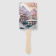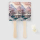 Un joli faux papier découpe paysage ensemble de ventilateurs à main avec montagnes, pavillon, et arbres.