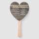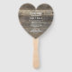 Ventilateur de main des programmes de mariage de grange en bois de pays en difficulté.