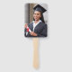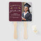 Aidez vos invités de remise de diplômes à garder le cool pendant la cérémonie ou la fête avec ces fans personnalisés de remise de diplômes photo, avec les mots "Félicitations à notre diplômé" en texte blanc sur un arrière - plan bordeaux. Le mot "Graduate" apparaît dans un script gracieux de style écriture manuscrite. Une paire de casquettes de planches de mortier en faux parties scintillant doré et une dispersion de confettis d'or décorent la partie supérieure du étiquette. Personnalisez un côté avec le nom, l'école et l'année de votre diplôme. Remplacez facilement l'exemple d'image de l'autre côté par une photo de votre grade.