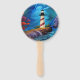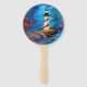 Beau phare rayé rouge et blanc sur une rocheuse surélevée entourée de fleurs et bleu eau/ciel IA Art créé par minx267