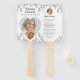 Créez vos propres programmes de cérémonie funéraire ou célébration de vie sur ces éventails à main souvenirs pour le confort de vos invités. Le design présente une photo en forme de cœur sur le devant et une autre au dos pour un hommage spécial à la mémoire de votre proche. Le design comprend également une verdure douce à l'aquarelle et un titre en typographie manuscrite gris charbon "À JAMAIS DANS NOS CŒURS" sur le devant. Tout le texte est modifiable pour s'adapter à vos besoins personnels. ASSISTANCE : Pour obtenir de l'aide pour la modification ou la personnalisation du design, le changement de couleur, le redimensionnement, le transfert du design sur un autre produit ou si vous souhaitez des articles de coordination, contactez le concepteur AVANT DE COMMANDER via l'onglet MESSAGE de discussion Zazzle ci-dessous ou par courriel à makeitaboutyoustore@gmail.com.