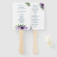 Programme de mariage à fleurs violettes et vertes Ventilateur à main avec texte bleu marine