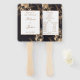 Programme de mariage éventail à main à arrangement floral métallisé or. Offrez à vos invités de mariage ces magnifiques programmes de mariage éventails à main détaillés, ils seront ravis. Ce design présente une composition florale métallisée or moderne mais traditionnelle sur fond noir ; il contient de belles polices de caractères manuscrites, qui le rendent très unique et spécial. Pour une personnalisation supplémentaire, veuillez cliquer sur le lien "personnaliser davantage" et utiliser l'outil de conception pour modifier ce modèle. Cliquez sur ce lien pour voir tous les articles de cette collection de mariage florale métallisée or. N'hésitez pas à me contacter si vous avez des questions. Conception @Miri Creations.
