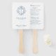 Les éventails de programme de mariage baroques avec un design de blason bleu orné offrent un détail luxueux et fonctionnel pour des cérémonies élégantes. L'avant présente un blason à monogramme inspiré du rococo royal avec des volutes complexes et des embellissements floraux, créant une première impression saisissante imprégnée de sophistication de style régence. En dessous, les polices serif classiques et les polices script fluides présentent les noms des mariés et la date du mariage en or radieux. Le verso organise les détails de la cérémonie et du cortège de mariage dans une mise en page claire et facile à lire, le tout stylisé dans un texte doré assorti. Parfait pour les mariages en plein air, cet éventail décoratif combine le charme aristocratique à l'élégance pratique pour une ambiance intemporelle et distinguée.