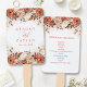 Éventail à main pour programme de mariage aux fleurs de terre cuite Pampas. Ce design de mariage moderne personnalisé peut être facilement personnalisé avec vos propres détails de mariage. Ce design présente des roses élégantes de couleur cuivre et crème dans des tons terreux. Un design élégant et romantique parfait pour un mariage bohème tropical exotique ou pour un mariage rustique d'automne.
