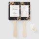 Programme de mariage avec éventail à main en arrangement floral métallisé or. Offrez à vos invités de mariage ces magnifiques programmes de mariage avec éventail à main détaillés, ils seront ravis. Ce design présente une composition florale métallisée or moderne mais traditionnelle sur fond noir ; il contient de belles polices de caractères manuscrites, qui le rendent très unique et spécial. Pour une personnalisation plus poussée, veuillez cliquer sur le lien "personnaliser davantage" et utiliser l'outil de conception pour modifier ce modèle. Cliquez sur ce lien pour voir tous les articles de cette collection de mariage florale métallisée or. N'hésitez pas à me contacter si vous avez des questions. Conception @Miri Creations.