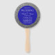 Élégant et simple, éventail à main de programme de mariage chic et luxueux avec écriture calligraphique moderne en argent et bleu royal.