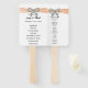 Programme de mariage Les fans sont un choix populaire pour les cérémonies d'été. C'est une façon élégante de garder un cool mariage et de fournir les détails importants comme vous dites "je le fais". Tenir votre événement à l'extérieur ? Il n'est pas surprenant que les gens aient besoin de quelque chose pour les garder cool. C'est pourquoi un éventail de main de programme de mariage personnalisé est le cadeau parfait à donner à votre mariage. Personnalisez et créez en ajoutant et en modifiant le texte dans les champs fournis. Vous pouvez modifier le style de police, la taille et la couleur, ainsi que le type de papier.