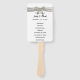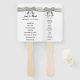 Programme de mariage Les fans sont un choix populaire pour les cérémonies d'été. C'est une façon élégante de garder un cool mariage et de fournir les détails importants comme vous dites "je le fais". Tenir votre événement à l'extérieur ? Il n'est pas surprenant que les gens aient besoin de quelque chose pour les garder cool. C'est pourquoi un éventail de main de programme de mariage personnalisé est le cadeau parfait à donner à votre mariage. Personnalisez et créez en ajoutant et en modifiant le texte dans les champs fournis. Vous pouvez modifier le style de police, la taille et la couleur, ainsi que le type de papier.
