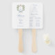 Ce programme sert de ventilateur portatif. Idéal pour un mariage programmé pour une journée chaude. Cette conception de programme a une crête de feuille d'aquarelle entourant votre monogramme et comprend l'ordre des événements et les détails de la fête nuptiale. Cette conception est coordonnée avec d'autres modèles de la collection de Mariages de monogrammes de poitrine de feuilles