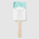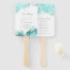 Un arrière - plan abstrait qui évoque le marbre dans les tons turquoises doux à travers le bleu d'eau profonde et veiné avec de l'argent scintillant est la toile de fond de textes élégants et de mises en page design moderne dans les pièces de cette belle suite mariage. Les fans de main mariage montrés ici présentent le programme de cérémonie ci-dessus plus votre programme de cérémonie et un modèle pour ajouter le nom de la mariée et du marié et la date du mariage. Reverse a les détails de votre mariage et un bref message de remerciement. Recherchez ID644 pour voir toutes les pièces de coordination de cet ensemble.