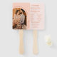 L'accessoire parfait pour tout mariage extérieur. Ce ventilateur personnalisable et personnalisé permet non seulement de garder vos invités cool, mais aussi de faire partie intégrante de votre programme de mariage. Idéal pour l'été, le printemps ou les mariage de automne, il est agrémenté d'un délicieux mélange de rose, de pêche, d'orange, de corail, de crème et de rouille, ce qui en fait un choix exceptionnel pour des thèmes variés tels que tropical, plage, jardin à bulles et mariages au coucher du soleil. Que vous planifiez une les années 70 rétro, une discothèque boho, une hippie super ou simplement une fête branchée et colorée, ce ventilateur ajoute une touche unique et fonctionnelle à votre journée spéciale.