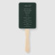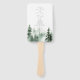 Elégante aquarelle Forêt Pine Tree Nature Scene, programme de mariage ventilateur de main. Typographie noir et blanc avec coordination des couleurs arrière - plans blanches et vertes.
