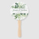 Éventail à main de programme de mariage bouquet de feuilles de forêt d'eucalyptus végétation naturelle écriture