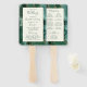 Ce ventilateur élégant et moderne de programme de mariage présente un fond d'agate vert émeraude rehaussé de fausse brillance dorée. Le texte apparaît dans une écriture manuscrite vert émeraude élégante et des polices copperplate sur un rectangle ivoire.