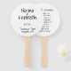 Ventilateur à main du programme de mariage simple avec un design simple avec vos détails en noir écriture sur un arrière - plan blanc. Ajoutez votre nom, date, lieu, ville et état au devant et vos cérémonies à l'arrière. Ce design simple et moderne conviendra à un couple minimaliste disposant d'une mariage décontractée. Si vous avez un mariage extérieur, ces ventilateurs de main sont à offrir à vos invités pour les aider à garder le cool et aussi faire un grand souvenir.