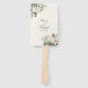 Ce programme de mariage élégant sous forme d'éventail à main présente un feuillage luxuriant de couleur vert sauge et des fleurs sauvages ivoire douces, idéal pour les cérémonies en plein air ou par temps chaud. La mise en page détaillée du programme garde les informations de votre cérémonie claires et magnifiquement présentées. L'illustration botanique à l'aquarelle ajoute une touche de jardin romantique, parfaitement alignée sur la tendance minimaliste organique de 2026. Le texte entièrement personnalisable vous permet d'adapter l'éventail à votre cérémonie et à votre cortège de mariage. Un accessoire pratique et élégant qui améliore votre esthétique de mariage cohérente.
